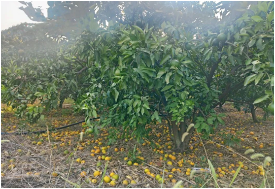 柑橘快要熟了卻掉滿地(攝影:肖偉)