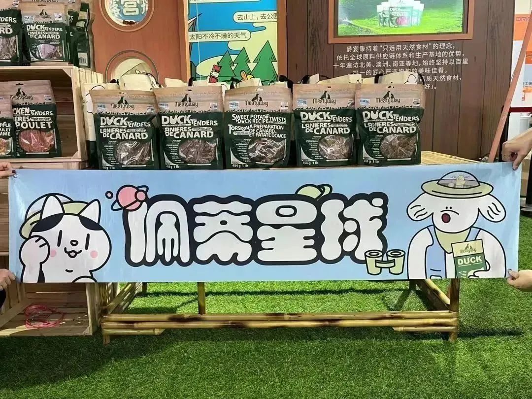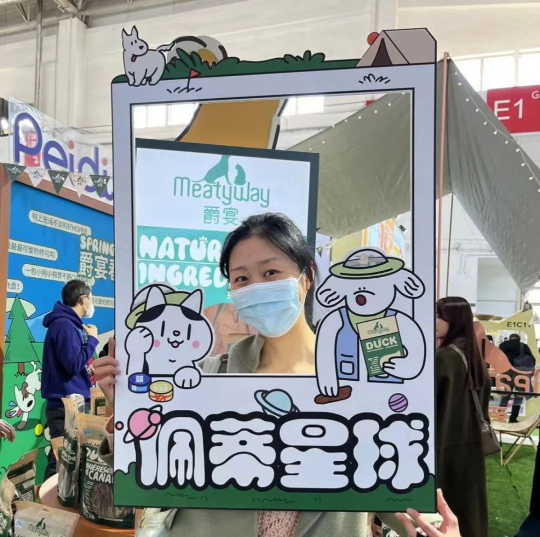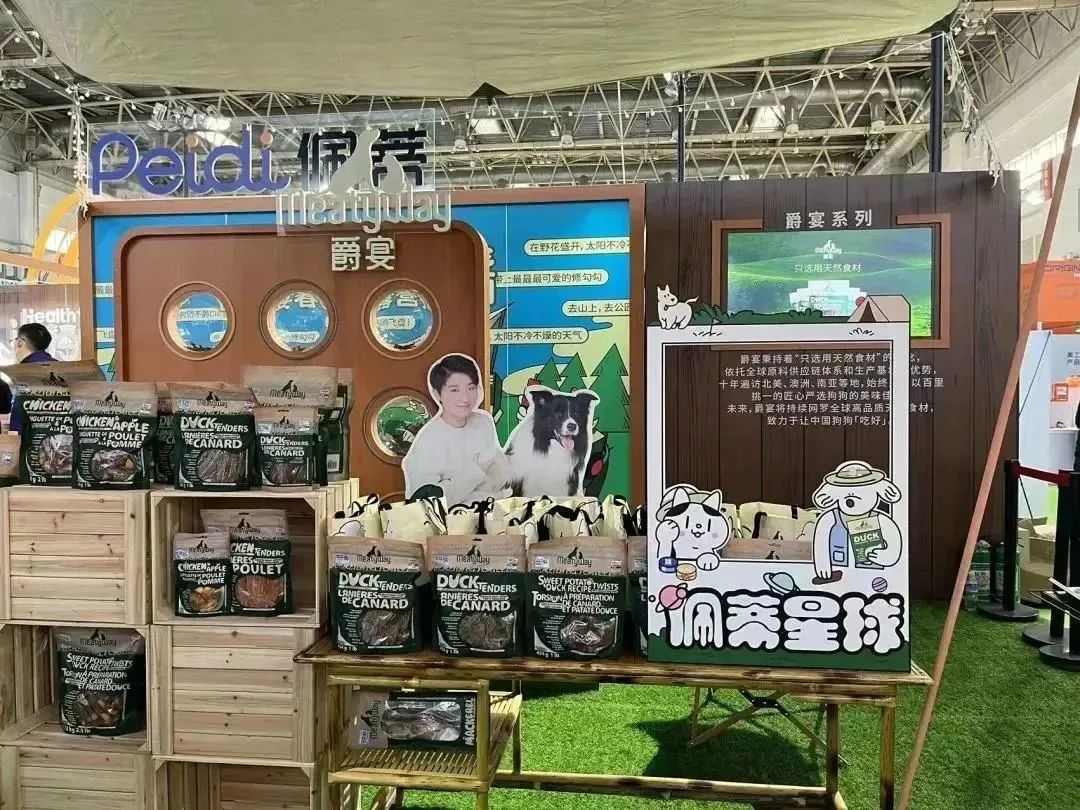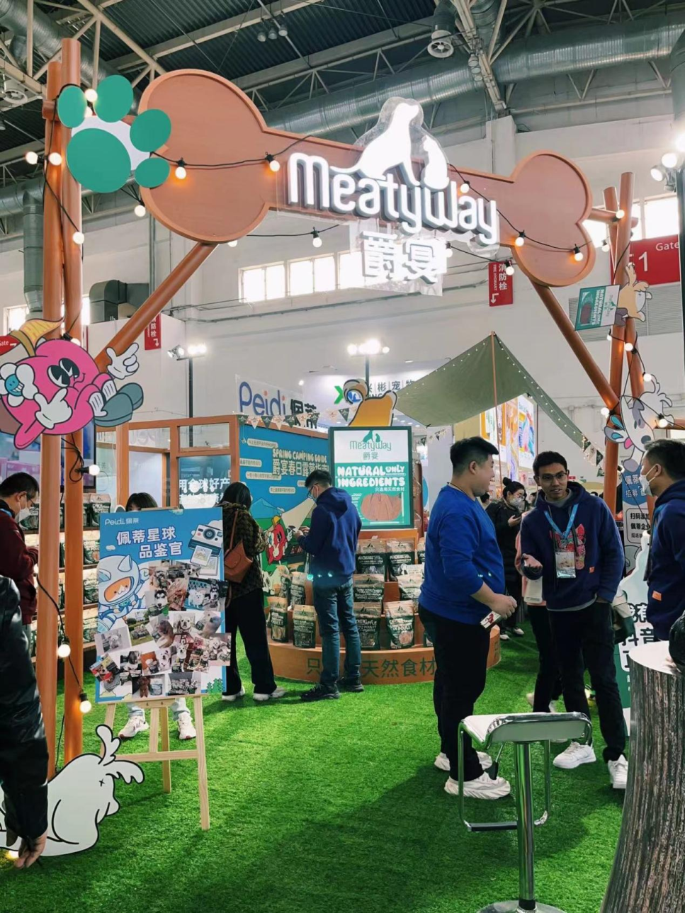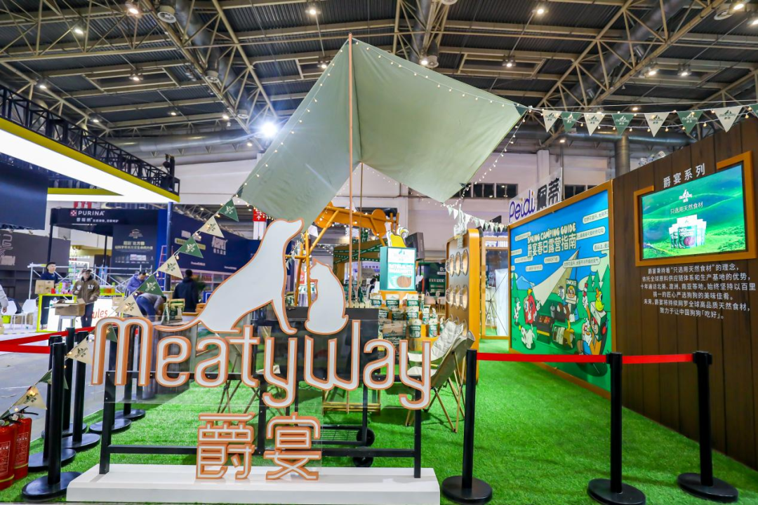 爵宴品牌展區(qū)鋪上清新柔軟的草坪,走上前去仿佛置身大自然。展臺采用原木設計風格,還別出心裁地搭起了帳篷,為人們駐足停留設置了休憩區(qū),場館內(nèi)即刻感受原野露營、圍爐燒烤的戶外氛圍。這是首個將戶外露營風格應用在室內(nèi)搭建的寵物展臺,旨在callback【爵宴搖尾營地】品牌活動。該活動已在杭州成功舉辦兩屆,如今搬到京寵展現(xiàn)場,讓北京的朋友們開心過把癮!