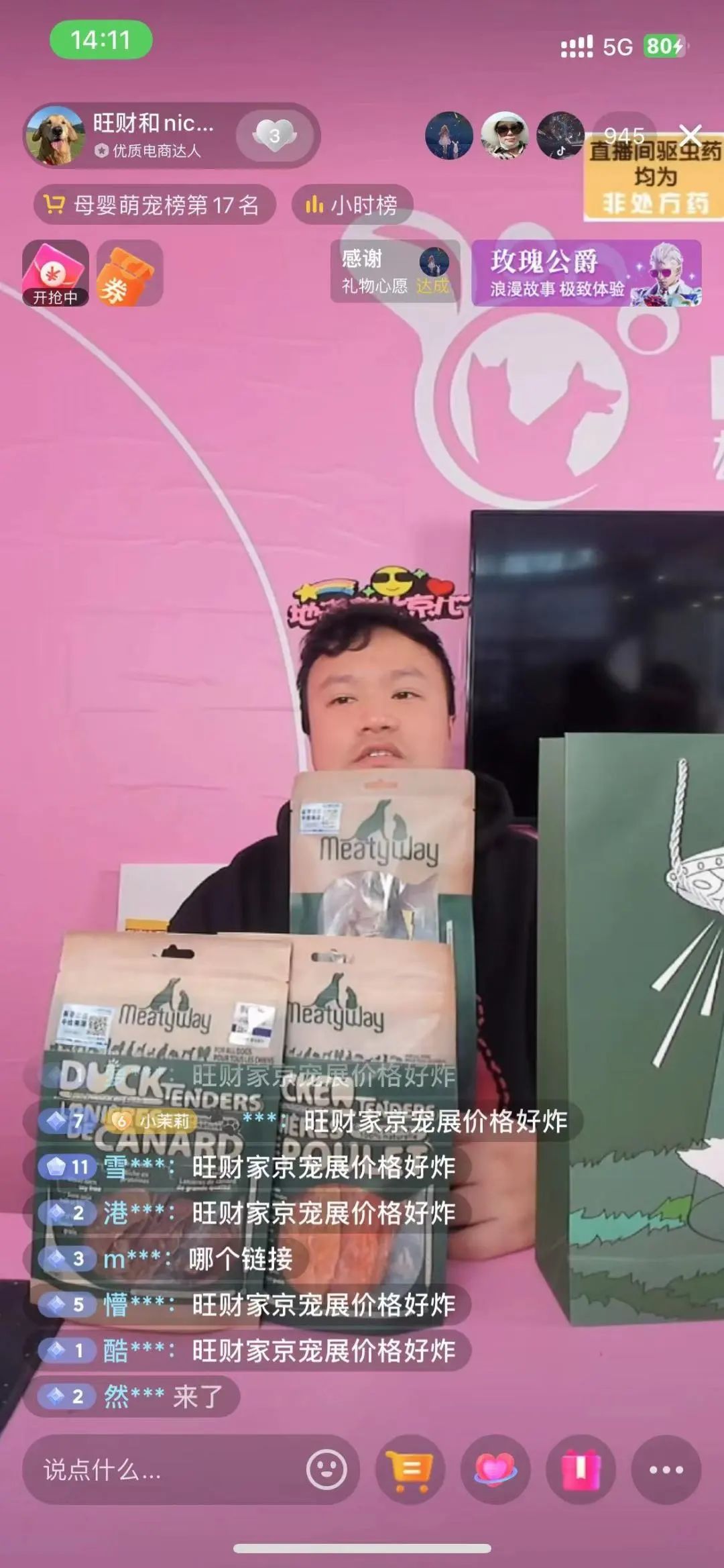 連線粉絲們非常給力,爵宴鴨肉干、好適嘉98K貓罐頭、好適嘉鯖魚罐、好適嘉黃金罐等爆款產(chǎn)品一經(jīng)上線便被搶購一空。