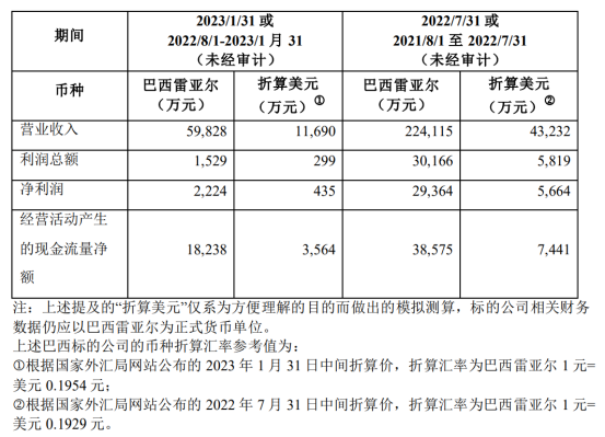 從標的公司財務方面來看,2021年8月1日至2022年7月31日,標的公司實現(xiàn)營收43232萬美元(現(xiàn)折合人民幣約30.98億元),凈利潤5664萬美元(4.06億元);2022年8月1日至2023年1月31日,標的公司半年實現(xiàn)營收11690萬美元(8.37億元),凈利潤435萬美元(3117萬元)。