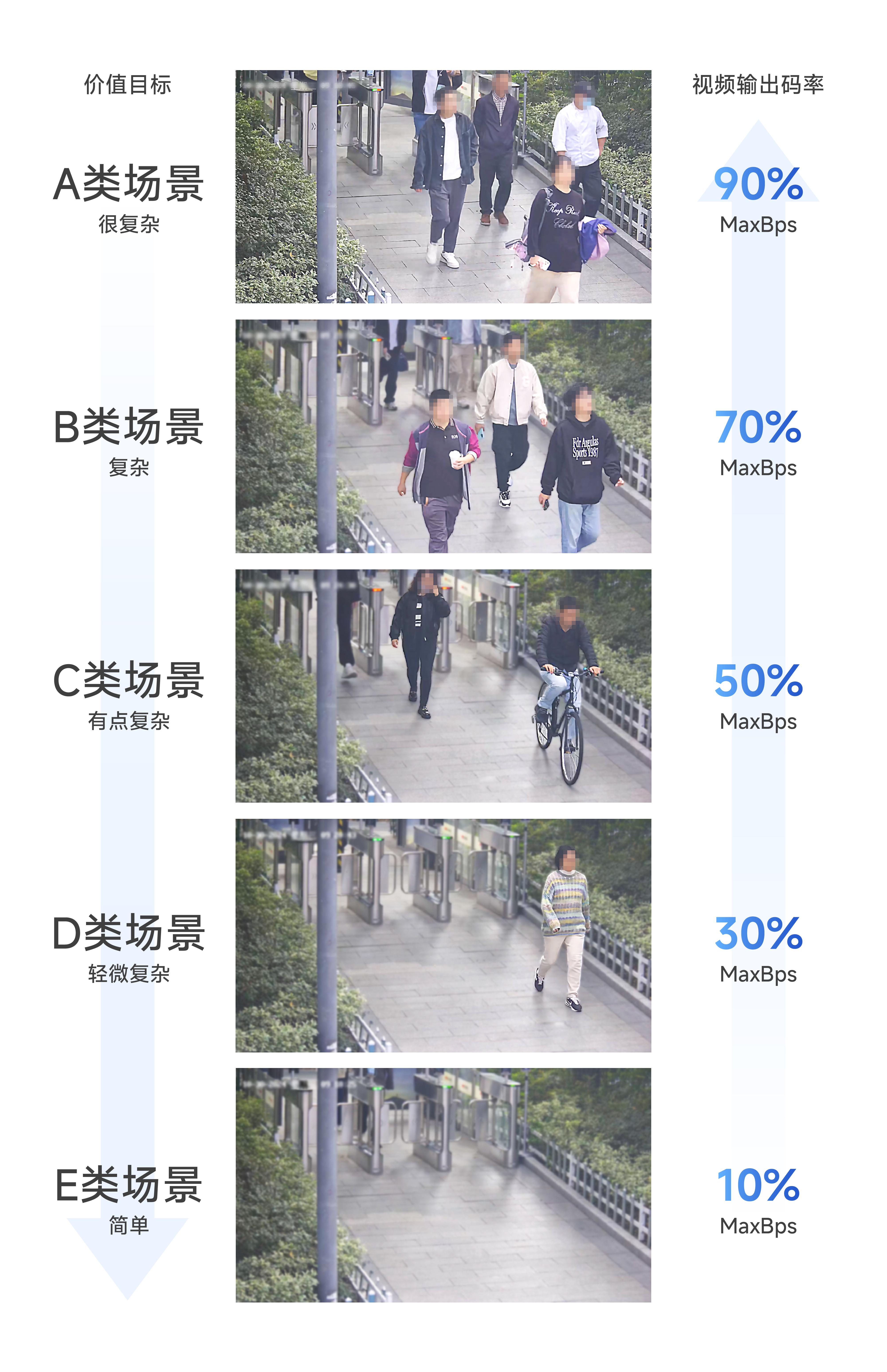 海康威視觀瀾編碼技術以“場景感知”為核心,構建動態(tài)適配的智能編碼體系,依托動態(tài)與靜態(tài)感知協同運作。動態(tài)感知,即實時捕捉場景運動幅度與細節(jié)密度,按最大碼率MaxBps百分比分配資源,保障復雜場景畫質無損;靜態(tài)感知,則是對靜止或低動態(tài)畫面采用重復幀編碼,單幀僅需幾十字節(jié),最大化優(yōu)化存儲成本。