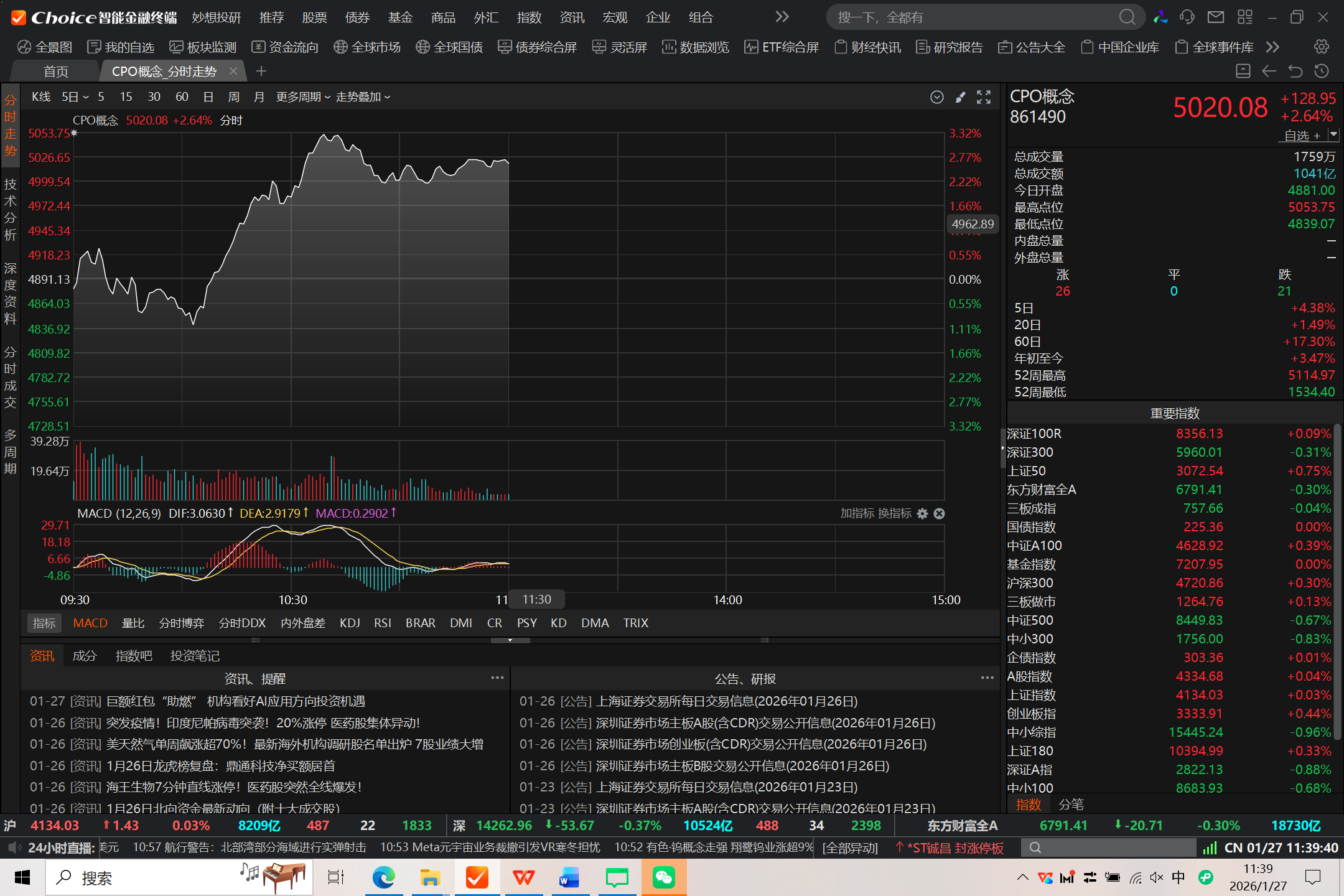 1月27日,A股市場迎來科技主線行情,光通信板塊集體走強,CPO(共封裝光學)概念強勢回暖。截至上午收盤,可川科技、中瓷電子漲停,源杰科技、天孚通信、新易盛、中際旭創(chuàng)等龍頭股紛紛跟漲。