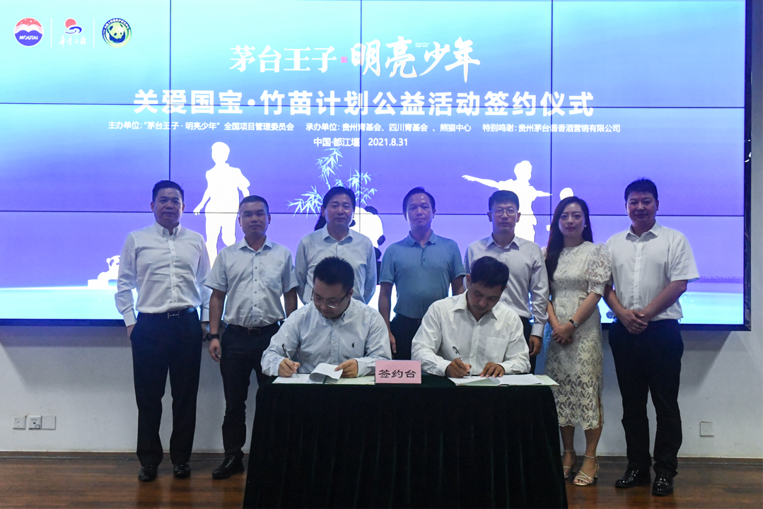 8月31日上午,由“茅臺王子·明亮少年”公益基金主辦,貴州省青基會、四川省青基會、中國大熊貓保護研究中心承辦的“關(guān)愛國寶·竹苗計劃”公益活動在成都正式簽約啟動。中國大熊貓保護研究中心副主任朱濤、黨政辦主任李德生,四川省青基會秘書長張萬謙,貴州省青基會副秘書長洪葉;貴州茅臺醬香酒營銷有限公司董事長張旭、總經(jīng)理李強清、副總經(jīng)理陳宗強以及部分經(jīng)銷商代表出席簽約啟動儀式。