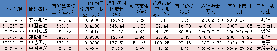 近31年以來A股新股發(fā)行募資額最高的當(dāng)屬農(nóng)業(yè)銀行的685億元,其次是中國石油,募資額達到668億元。中國神華緊隨其后,募資額666億元;建設(shè)銀行募資額達581億元,中國移動擬募資額560億元。在A股新股募資總額排行榜中,中國移動募資額排行第五名。另外,中芯國際、中國建筑的募資額也都超過了500億元。