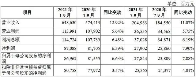 據(jù)招股說明書披露顯示,中國移動2021年1月份-9月份營業(yè)收入6486.30億元,較上年同期增長12.92%;歸屬于母公司股東的凈利潤869.62億元,較上年同期增長6.63%。中國移動預(yù)計2021年度營業(yè)收入約為8448.77億元至8525.58億元,同比增長幅度約為10%至11%;歸屬于母公司股東的凈利潤約為1143.07億元至1164.64億元,同比增長約為6%至8%。
