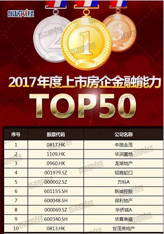 《2017上市房企金融能力TOP50》榜單顯示,來自滬深交易所的房地產(chǎn)上市公司(含同時在香港上市的公司)共19家,來自港交所的房地產(chǎn)上市公司共31家,其中中國金茂、華潤置地、龍湖地產(chǎn)位居三強。這也意味著,龍湖系上市民營房企金融能力第一。