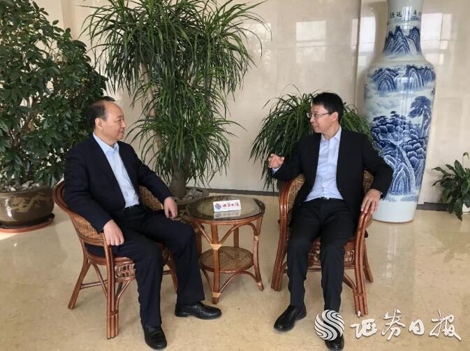 中國(guó)動(dòng)力總經(jīng)理劉寶生(左一)接受本報(bào)記者采訪
