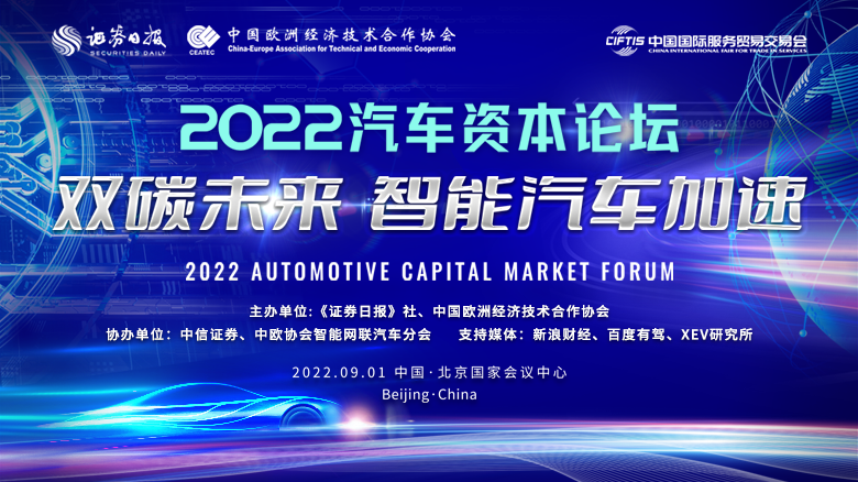 9月1日上午,2022年中國國際服務(wù)貿(mào)易交易會(huì)(簡稱服貿(mào)會(huì))首場(chǎng)論壇——2022汽車資本論壇“雙碳未來,智能汽車加速”將在北京國家會(huì)議中心舉行。本次論壇由證券日?qǐng)?bào)與中國歐洲經(jīng)濟(jì)技術(shù)合作協(xié)會(huì)聯(lián)辦...[詳細(xì)]