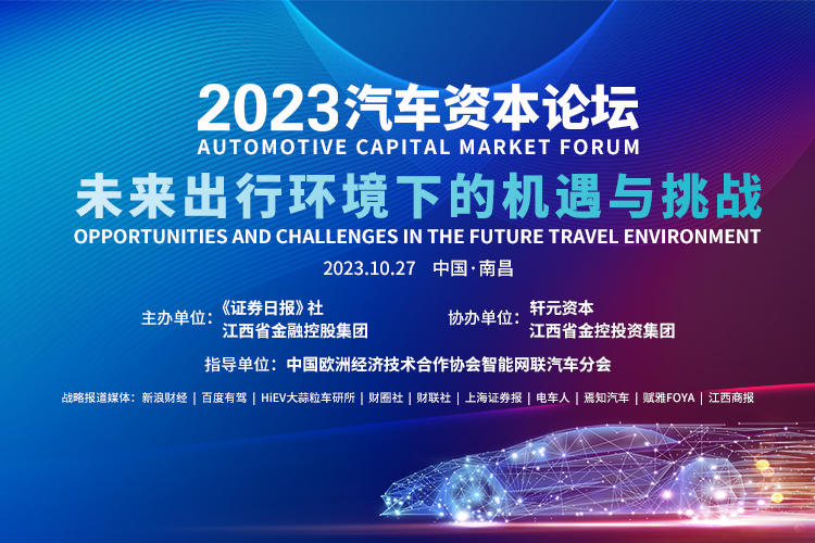由《證券日?qǐng)?bào)》社與江西省金融控股集團(tuán)主辦、江西省金控投資集團(tuán)與上海軒元私募基金管理有限公司協(xié)辦的"2023汽車資本論壇--未來出行環(huán)境下的機(jī)遇與挑戰(zhàn)"將于2023年10月27日在江西南昌舉辦...[詳細(xì)]