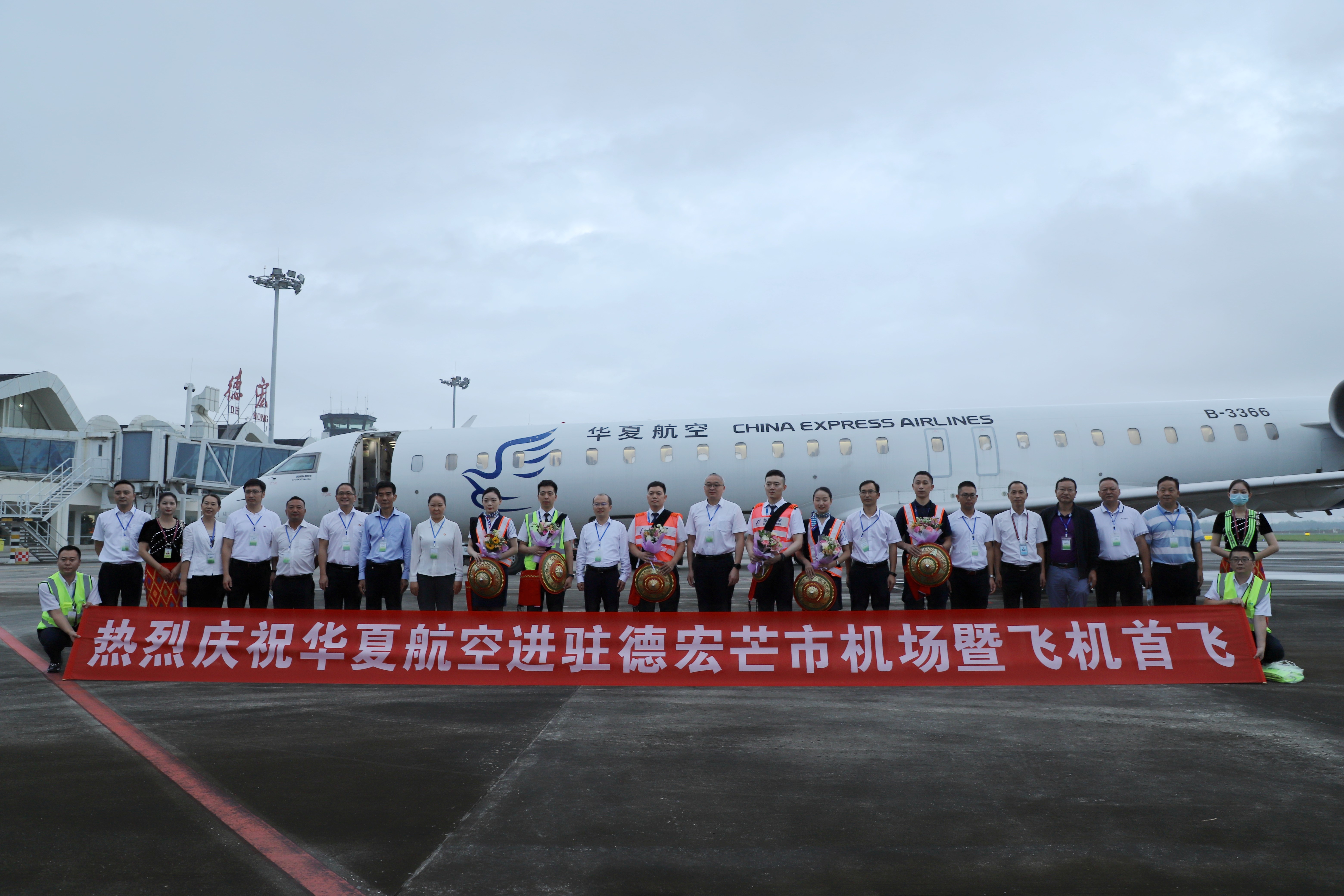 7月20日,云南德宏州與華夏航空簽約儀式暨德宏基地啟動(dòng)儀式在芒市機(jī)場(chǎng)舉行,華夏航空首架云南過(guò)夜運(yùn)力已進(jìn)駐德宏芒市機(jī)場(chǎng),并于當(dāng)天成功執(zhí)行芒市至瀾滄航線首飛。德宏州副州長(zhǎng)馮皓、華夏航空聯(lián)席總裁李三生等相關(guān)領(lǐng)導(dǎo)參加首飛儀式,并為機(jī)組人員送上了鮮花和具有德宏特色的紀(jì)念品。