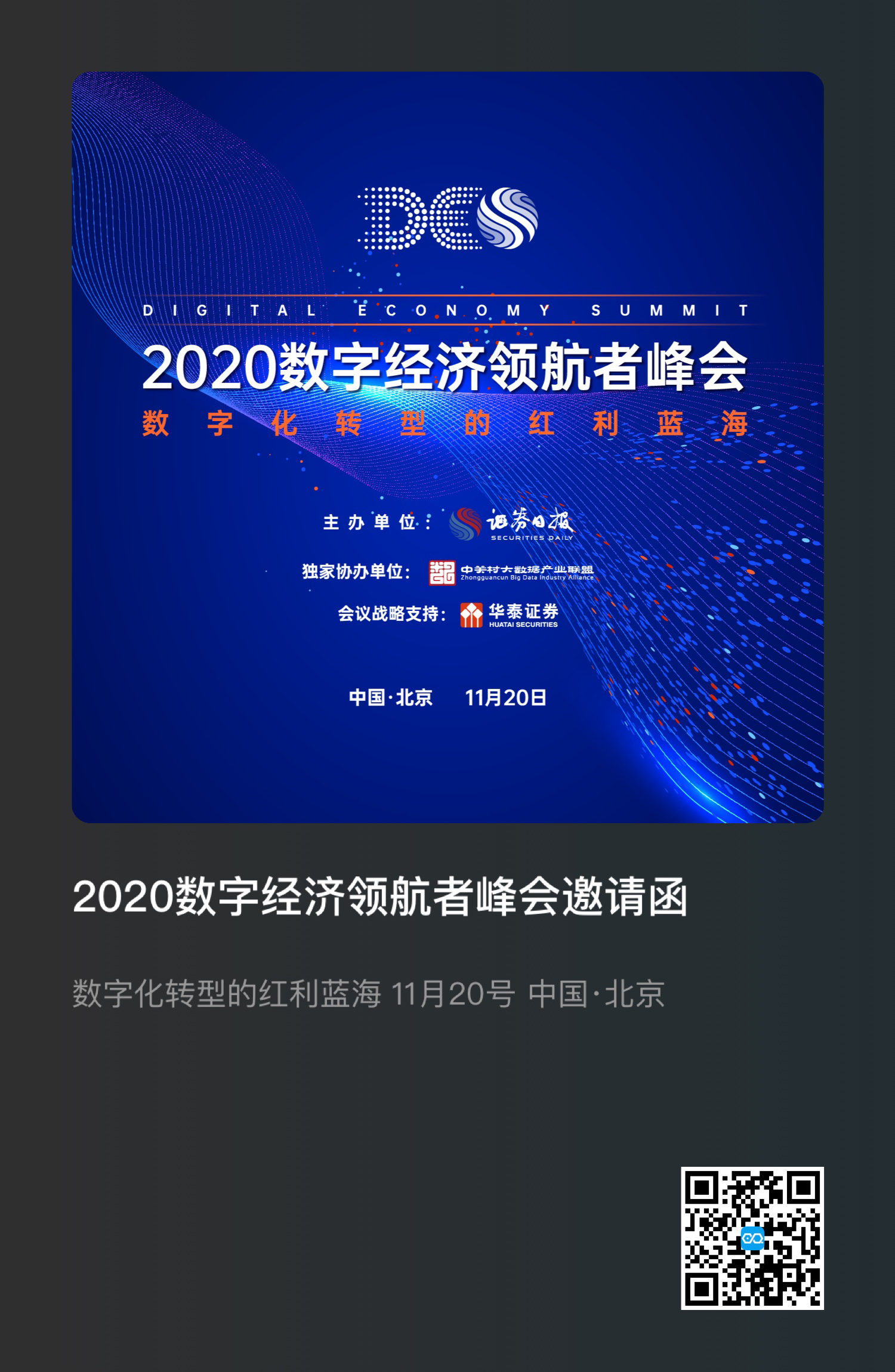 如是背景下,《證券日報》將于2020年11月20日在京舉辦“2020數(shù)字經(jīng)濟領(lǐng)航者峰會——數(shù)字化轉(zhuǎn)型的紅利藍(lán)海”。屆時,來自監(jiān)管系統(tǒng)、上市公司、擬上市公司、金融機構(gòu)、中介機構(gòu)、經(jīng)濟學(xué)界的數(shù)百名代表將齊聚一堂,共議數(shù)字經(jīng)濟的發(fā)展方向。