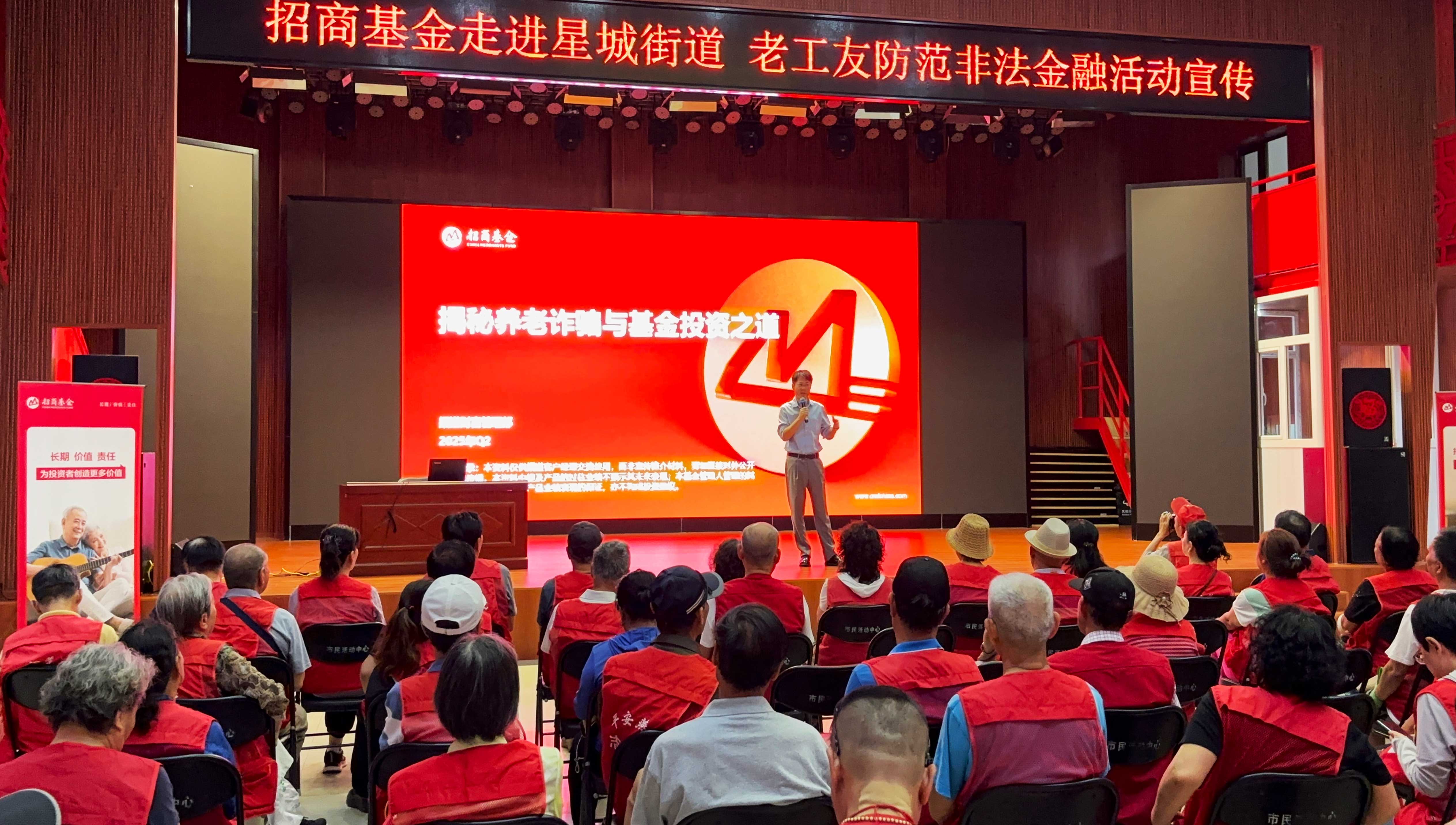 活動現(xiàn)場,招商基金渠道財富管理部首席財富顧問黃亮以《揭秘養(yǎng)老詐騙與基金投資之道》為主題,結(jié)合近期市場動態(tài)與真實案例,深入剖析了當(dāng)前針對老年人群體的常見金融詐騙手法,揭示了不法分子利用“養(yǎng)老”需求設(shè)置的各種陷阱。在風(fēng)險提示的同時,黃亮還介紹了個人養(yǎng)老金制度,普及了公募基金的基礎(chǔ)知識,倡導(dǎo)長期投資、價值投資和理性投資的理念,引導(dǎo)居民根據(jù)自身風(fēng)險承受能力與財務(wù)目標(biāo),通過正規(guī)金融機(jī)構(gòu)進(jìn)行理財規(guī)劃,為安享晚年提供經(jīng)濟(jì)保障。