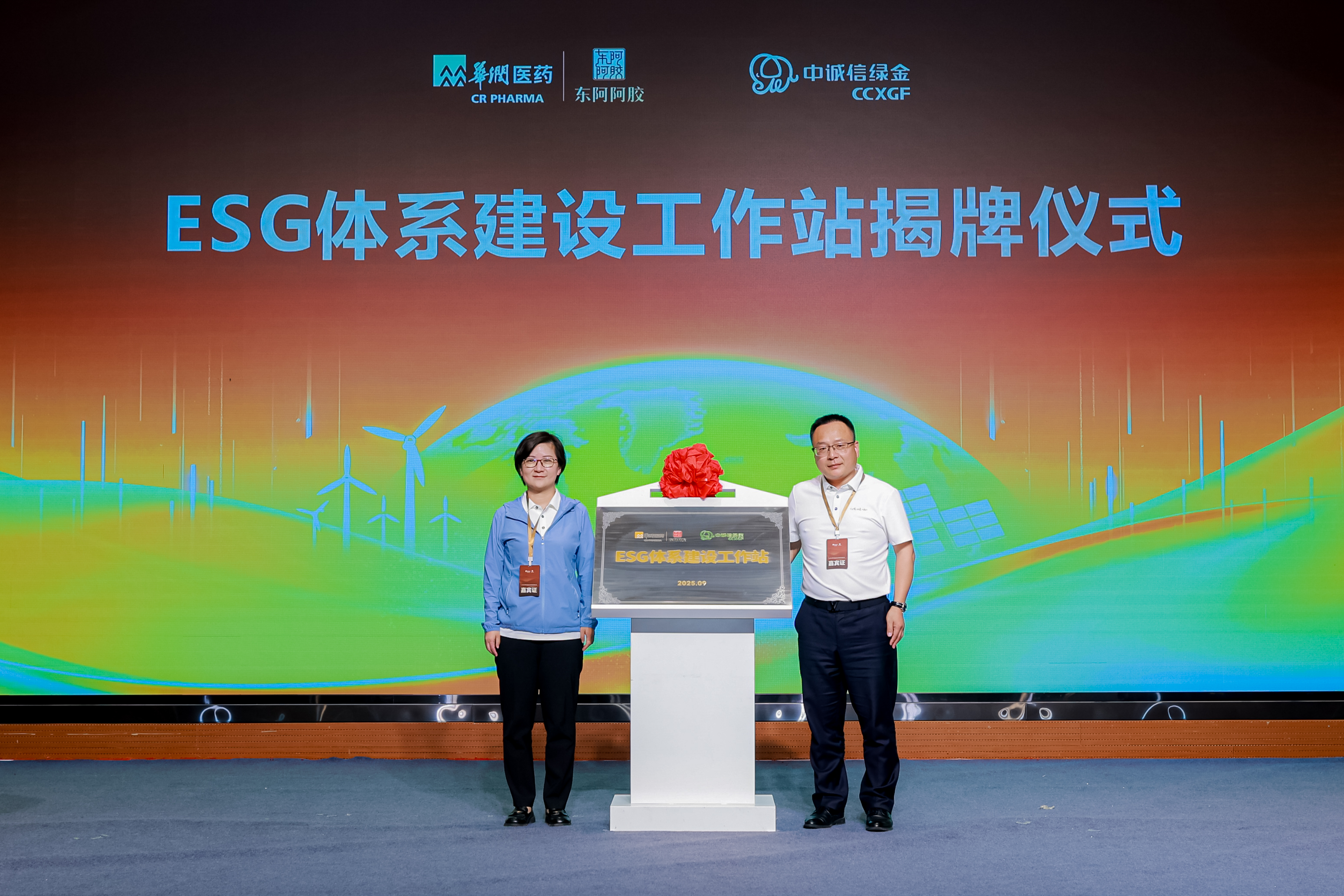 為進一步深化產(chǎn)學研合作,深度踐行低碳理念,會議舉行了“ESG體系建設工作站”揭牌儀式,孫金妮、薛東陽為工作站揭牌,薛東陽為東阿阿膠頒發(fā)碳中和證書。