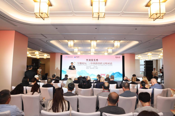 10月28日,在2025赤水河論壇期間,以“杯酒鑒文明”為主題的“中西酒香跨文明對(duì)話”專題論壇在茅臺(tái)國(guó)際大酒店舉行。領(lǐng)導(dǎo)嘉賓、中外知名酒企、企業(yè)家、文化界及媒體代表齊聚赤水河畔,共同品鑒東方酒香與西方酒韻,在杯中感受文明的交融,暢談文化的未來(lái)發(fā)展。