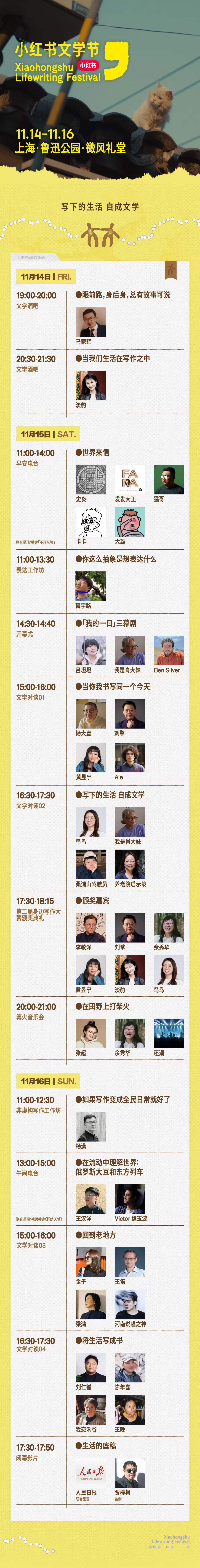 本報(bào)訊 (記者梁傲男)近日,小紅書“身邊寫作大賽”再度啟動(dòng),這是一項(xiàng)由小紅書發(fā)起的全民寫作計(jì)劃,設(shè)置了“詩歌”“非虛構(gòu)”競賽單元以及“世界的一日”特別單元,在此基礎(chǔ)上,小紅書平臺(tái)擬于11月14日至16日在上海魯迅公園微風(fēng)禮堂舉辦小紅書文學(xué)節(jié)?,F(xiàn)場規(guī)模預(yù)計(jì)將超過1萬人。