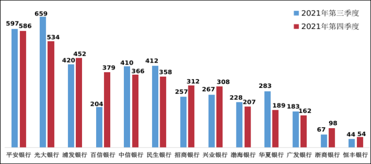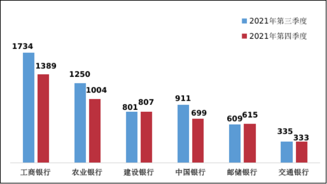 3月8日,據(jù)中國銀保監(jiān)會官網(wǎng)消息,近日,中國銀保監(jiān)會消費者權(quán)益保護局發(fā)布《關(guān)于2021年第四季度銀行業(yè)消費投訴情況的通報》(以下簡稱《通報》),披露了銀保監(jiān)會及其派出機構(gòu)接收并轉(zhuǎn)送的銀行業(yè)消費投訴情況,也通報了部分銀行業(yè)務(wù)的投訴量排名。