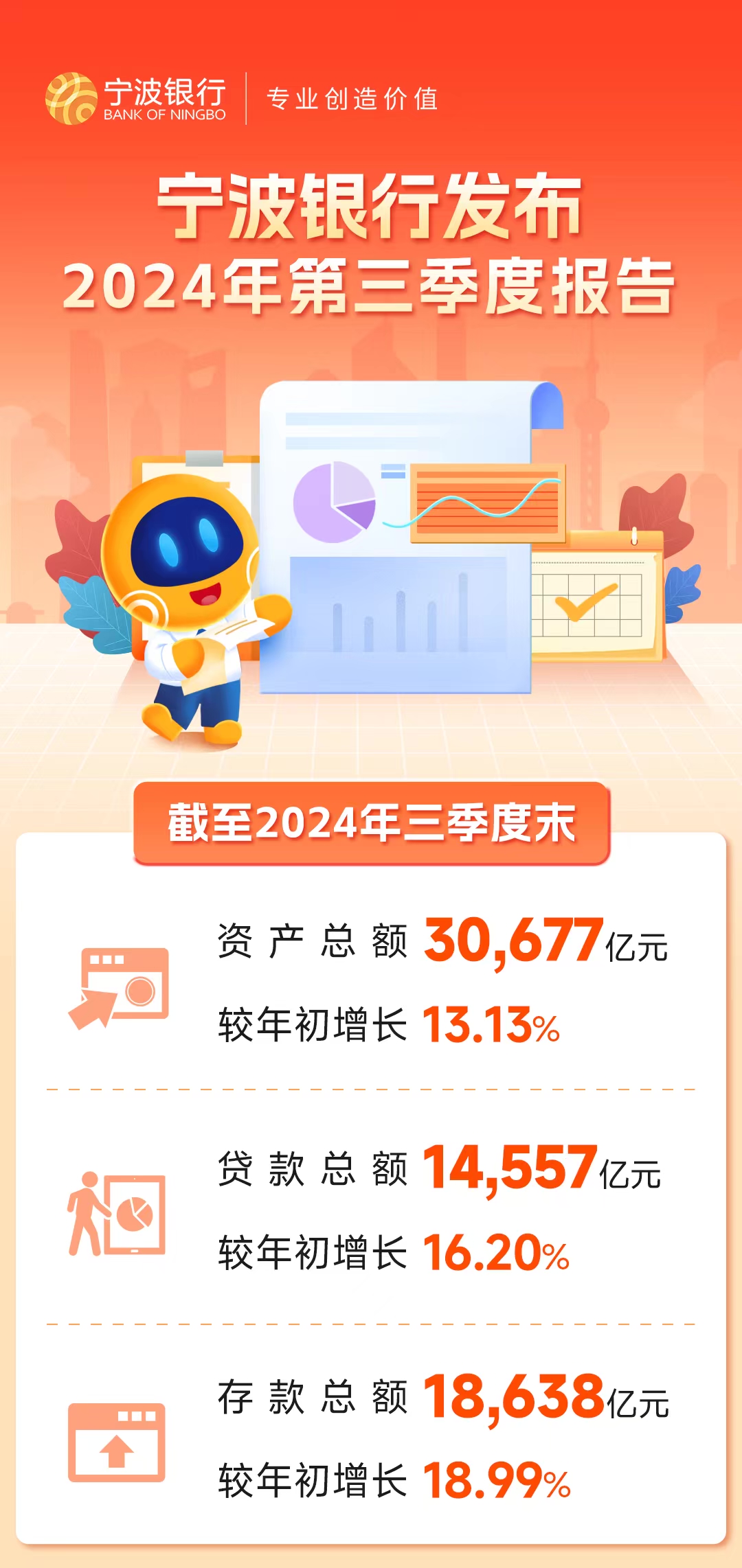 2024年前三季度,寧波銀行繼續(xù)扎根經(jīng)營區(qū)域,堅持“專注主業(yè),服務實體”的經(jīng)營理念,緊密圍繞“五篇大文章”傾斜信貸資源,不斷加大高質(zhì)量資產(chǎn)投放力度,推動資產(chǎn)規(guī)模持續(xù)增長。