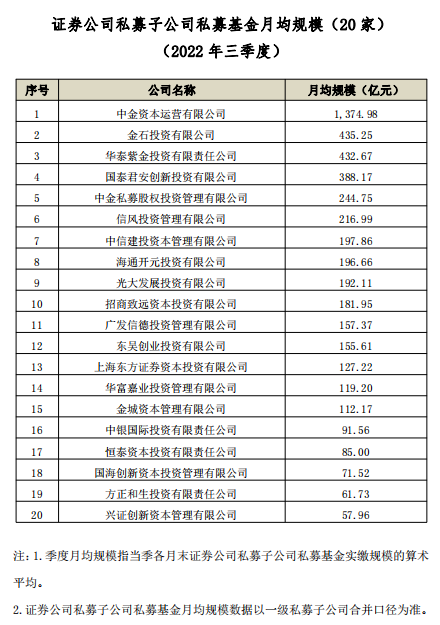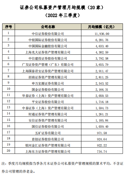 11月14日晚間,中國證券投資基金業(yè)協(xié)會發(fā)布三季度證券公司私募資產(chǎn)管理月均規(guī)模數(shù)據(jù),據(jù)《證券日報》記者梳理,前20強月均規(guī)模合計為5.73萬億元,環(huán)比增長1.21%。