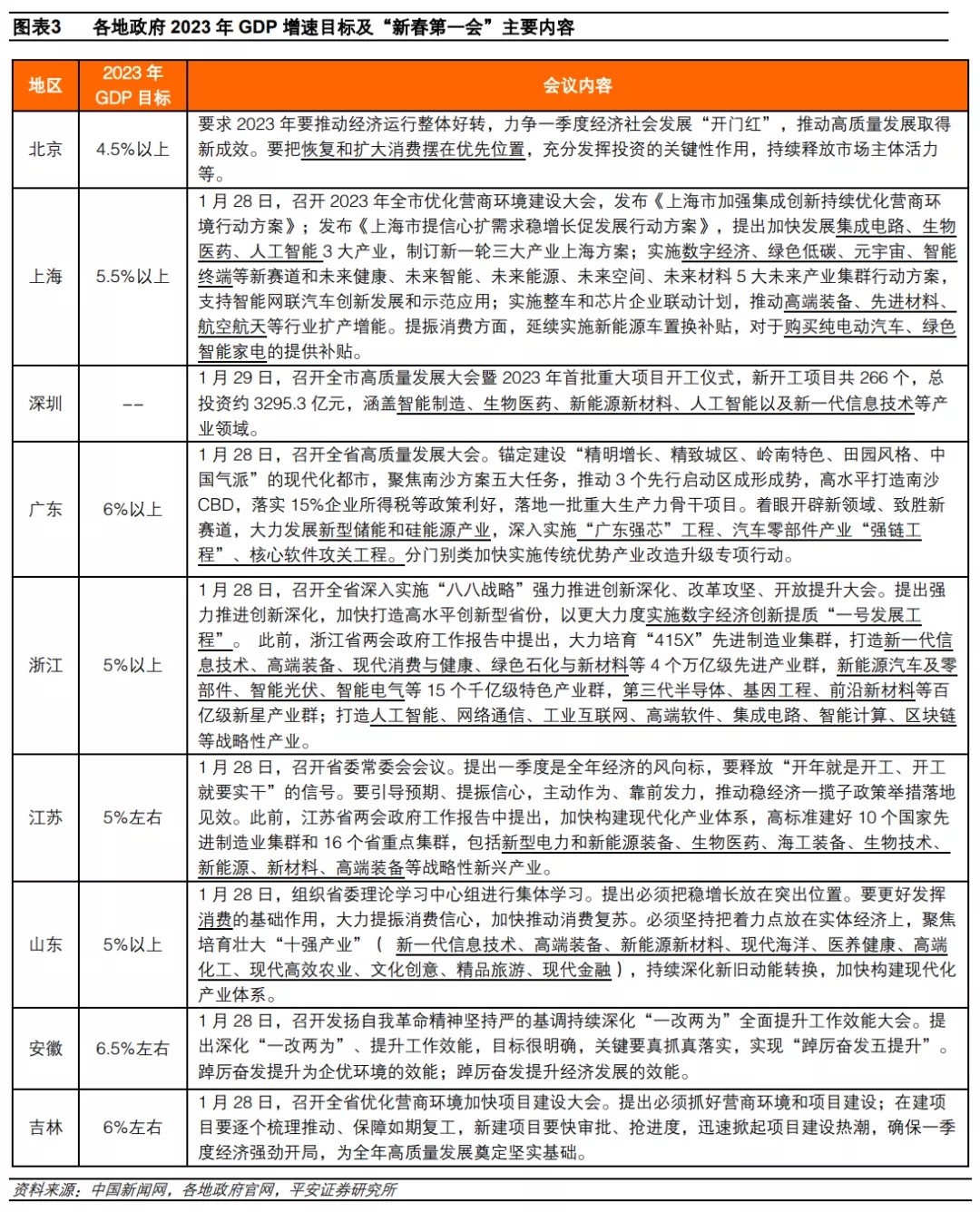 此外,平安證券關注到春節(jié)之后各地政府發(fā)展經(jīng)濟搶跑的跡象,廣東、浙江、安徽、吉林、上海等地都召開了省級層面的“新春第一會”及新一輪優(yōu)化營商環(huán)境行動方案,從部署內(nèi)容來看,高質(zhì)量發(fā)展、優(yōu)化營商環(huán)境、重點項目建設等主題是關注的重點。當結合推動高質(zhì)量發(fā)展、發(fā)展現(xiàn)代產(chǎn)業(yè)體系、統(tǒng)籌發(fā)展和安全、全面深化改革開放、大力提振市場信心、把實施擴大內(nèi)需戰(zhàn)略同深化供給側結構性改革有機結合起來等關鍵詞看,新一輪政府發(fā)力經(jīng)濟建設,不僅符合中國中長期的發(fā)展規(guī)劃,也符合疫情之后企業(yè)和個人對于美好生活的向往。而行業(yè)層面則看到了諸多政策的優(yōu)化和調(diào)整,比如房地產(chǎn)、互聯(lián)網(wǎng)、教育、醫(yī)療、游戲等。中國資本市場在此過程中將推動凝聚中長期預期,2022年提風物長宜放眼量,2023年則是長風破浪會有時,中國經(jīng)濟的韌性、中國企業(yè)的調(diào)整能力都會逐步地體現(xiàn)出來。