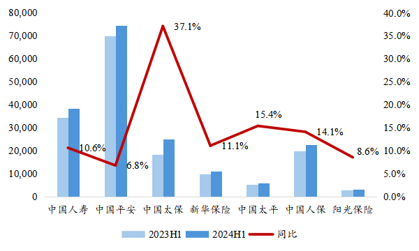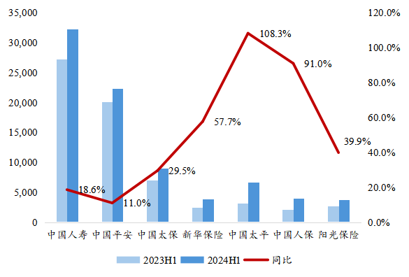 圖1:2024年上半年上市險(xiǎn)企NBV實(shí)現(xiàn)景氣增長(zhǎng)(百萬元)