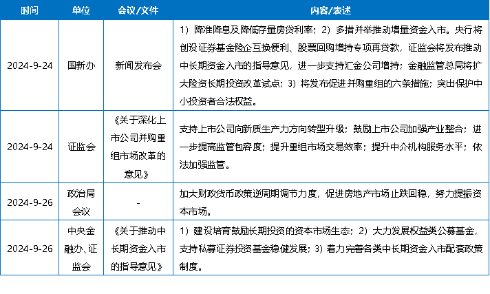 表1:政策組合拳推出,努力提振資本市場(chǎng)