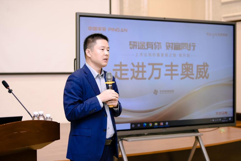 萬豐奧威副總經(jīng)理、董事會秘書李亞介紹公司發(fā)展歷程和經(jīng)營優(yōu)勢