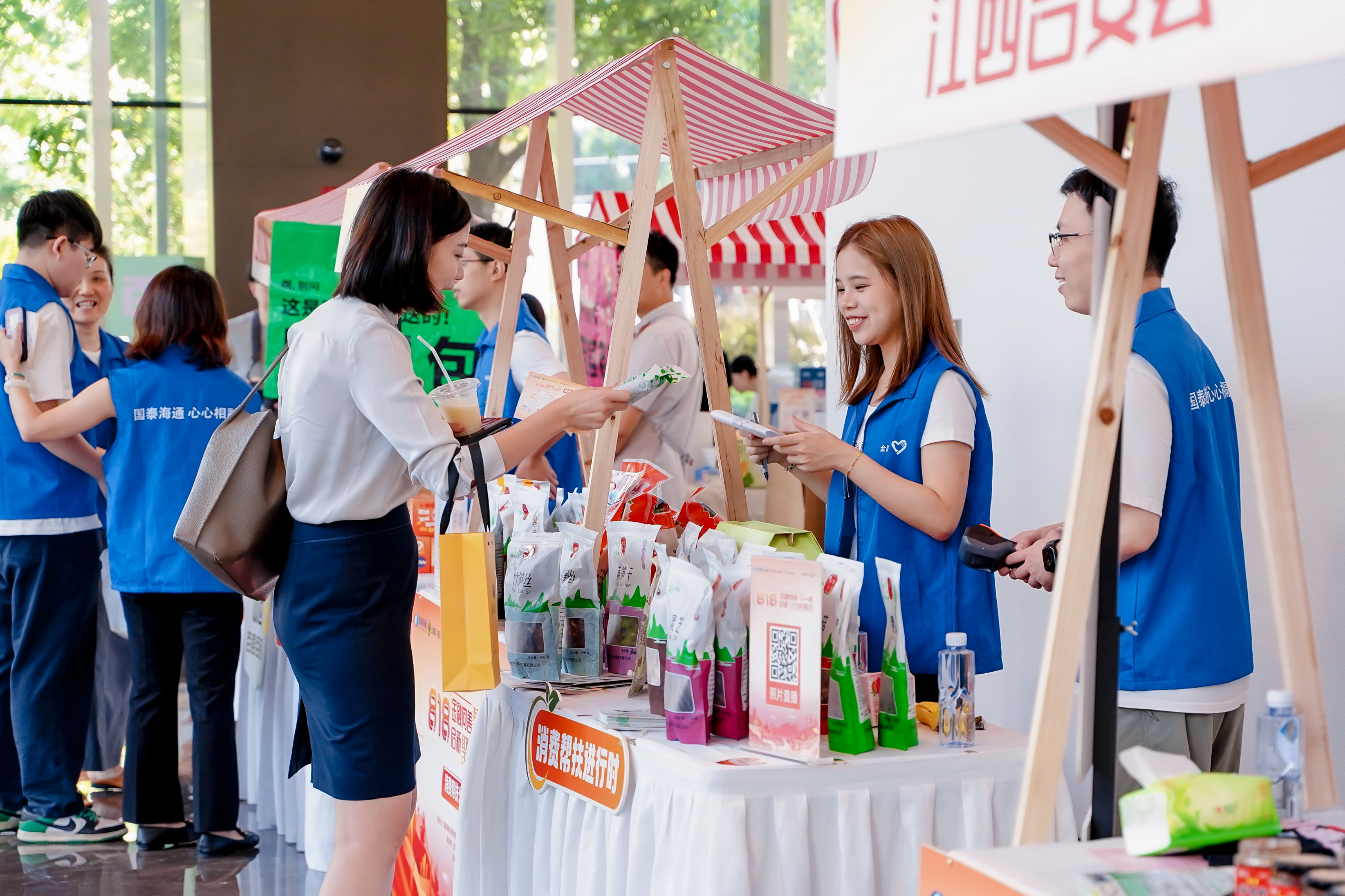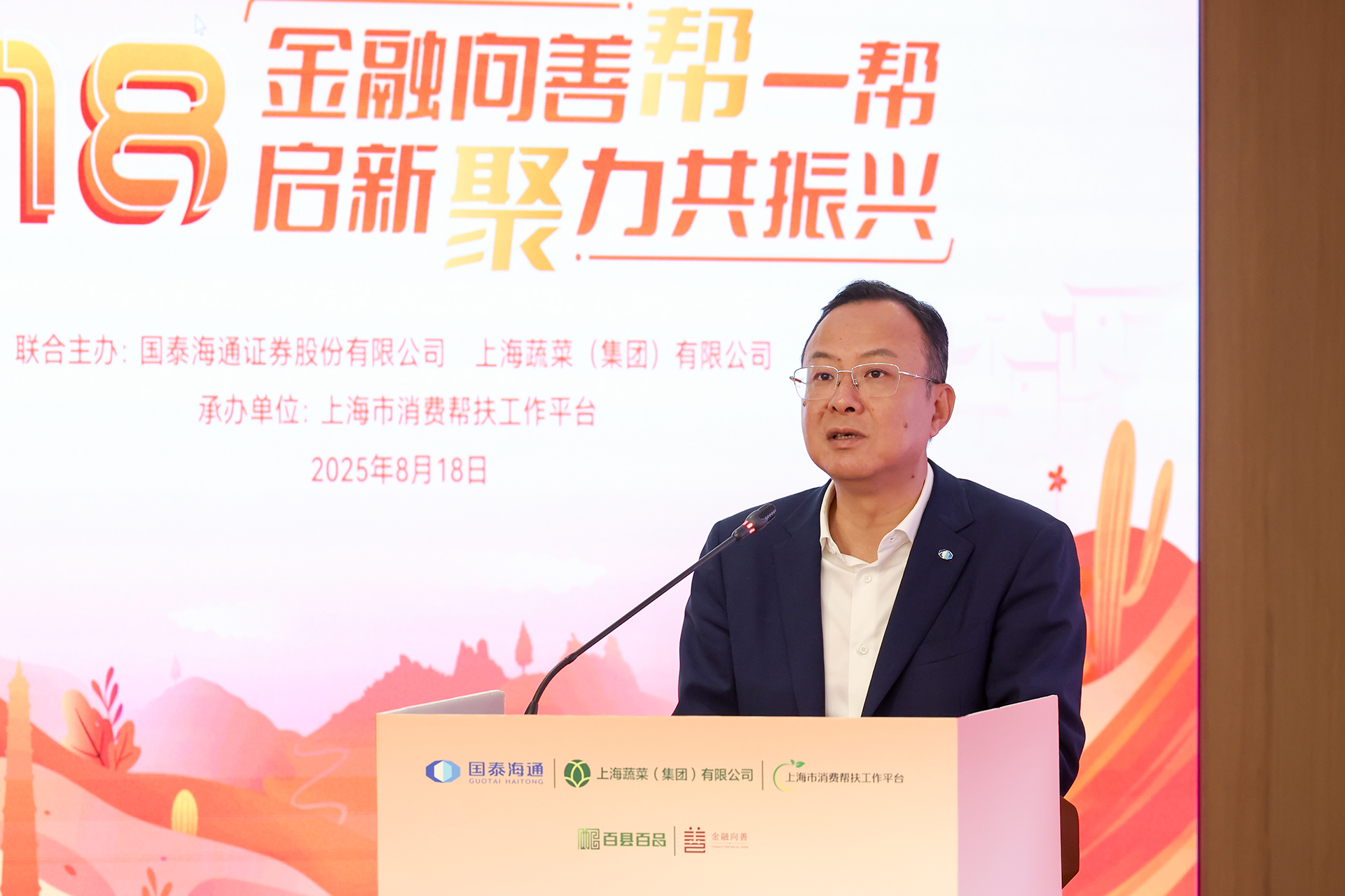 為進(jìn)一步做好“一司一縣”結(jié)對(duì)幫扶、“百企結(jié)百村”工作,強(qiáng)化幫扶實(shí)效,助力鄉(xiāng)村全面振興,8月18日,國(guó)泰海通攜手戰(zhàn)略客戶光明集團(tuán)下屬上海蔬菜集團(tuán)(上海市消費(fèi)幫扶工作平臺(tái))舉辦首屆“818·幫一幫”公益文化節(jié)暨消費(fèi)幫扶公益集市。公司黨委書記、董事長(zhǎng)朱健,黨委副書記、工會(huì)主席吳紅偉出席活動(dòng),上海市慈善基金會(huì)、上海市合作交流辦、上海市國(guó)資委、上海市民政局和來自安徽利辛、安徽潛山、安徽舒城、江西吉安、江西寧都、四川普格、新疆葉城、云南廣南、云南麻栗坡、云南西疇10個(gè)結(jié)對(duì)幫扶縣相關(guān)領(lǐng)導(dǎo),以及上海證券交易所、浙江大學(xué)、東方航空、浦發(fā)銀行等公益伙伴代表參加活動(dòng),公司各部門、子公司相關(guān)負(fù)責(zé)人和志愿者等130余人參加主會(huì)場(chǎng)活動(dòng),線上線下600余名員工參加公益集市活動(dòng)。