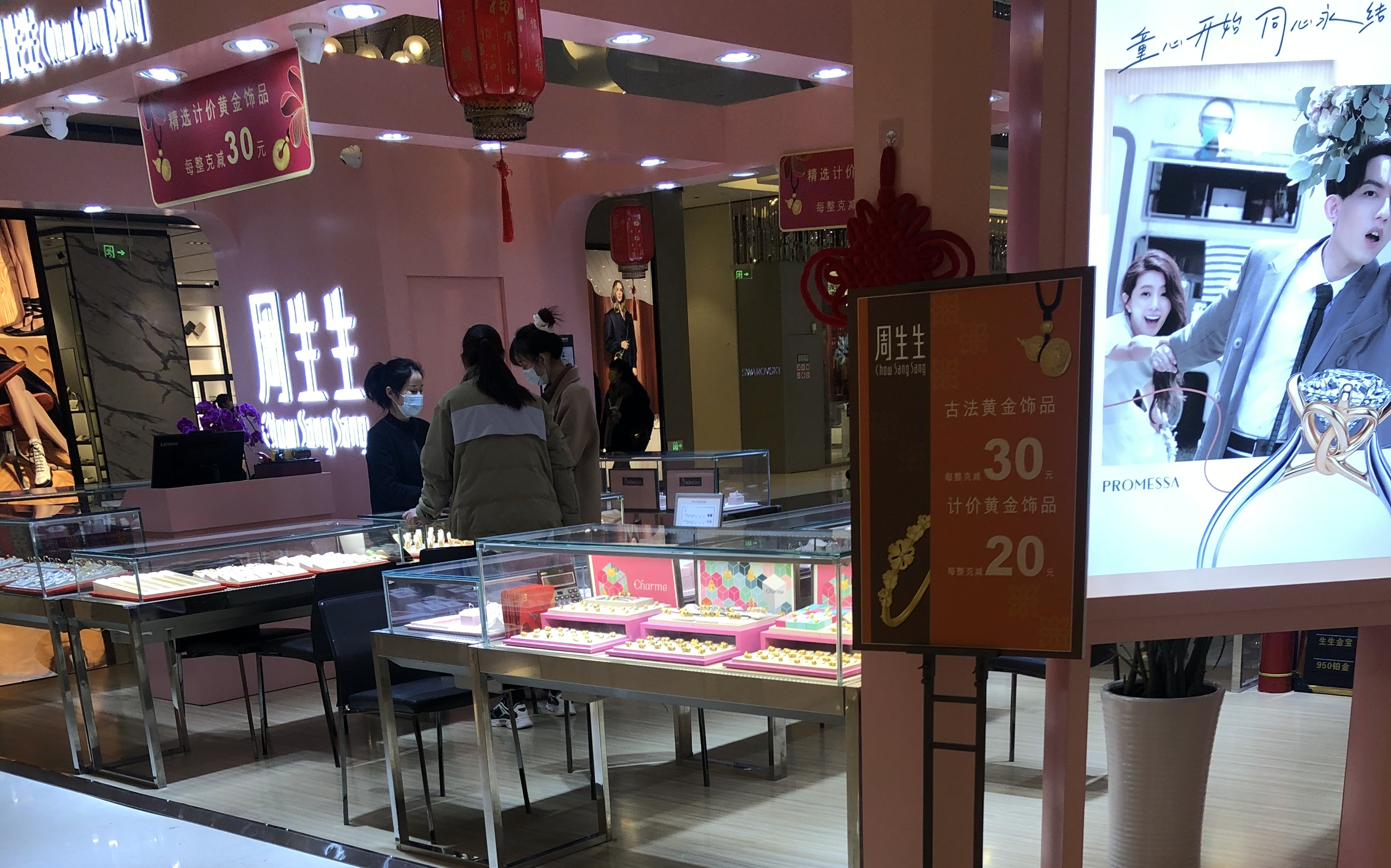 “最近一段時(shí)間,金價(jià)有所回落,再加上春節(jié)疊加情人節(jié),這幾天銷(xiāo)售情況還是非常不錯(cuò),昨天(2月14日)我們專(zhuān)柜銷(xiāo)售額過(guò)了百萬(wàn)元。”2月15日,周生生的銷(xiāo)售人員告訴《證券日?qǐng)?bào)》記者。