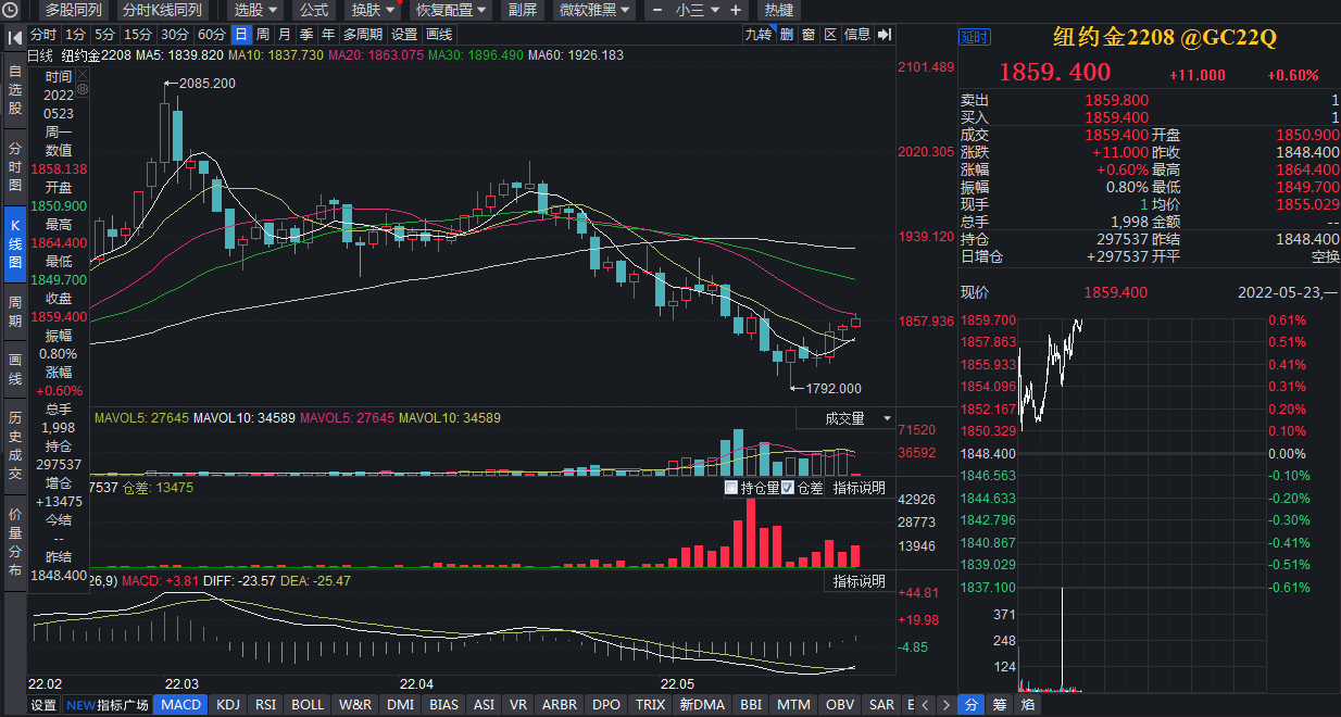 銀河期貨貴金屬研究員萬一菁認為:“首先,目前國際地緣政治問題仍然較多,且美聯(lián)儲6月份和7月份加息的預(yù)期均為50個基點,不如此前75個基點強烈,這給黃金提供了一定支撐。尤其是美元指數(shù)回落,也給黃金提供了喘息機會;其次,近期出現(xiàn)猴痘確診病例也令全球避險情緒回升。在多重因素疊加下,貴金屬價格觸底反彈。”