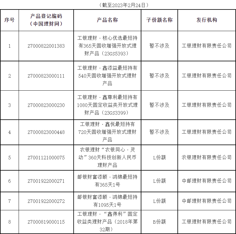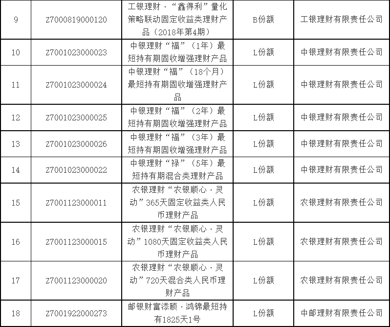 記者注意到,此次新增的11只產品均涉及子份額。其中,工銀理財發(fā)布的2只產品子份額名稱為“B份額”,其余9只產品子份額名稱為“L份額”。