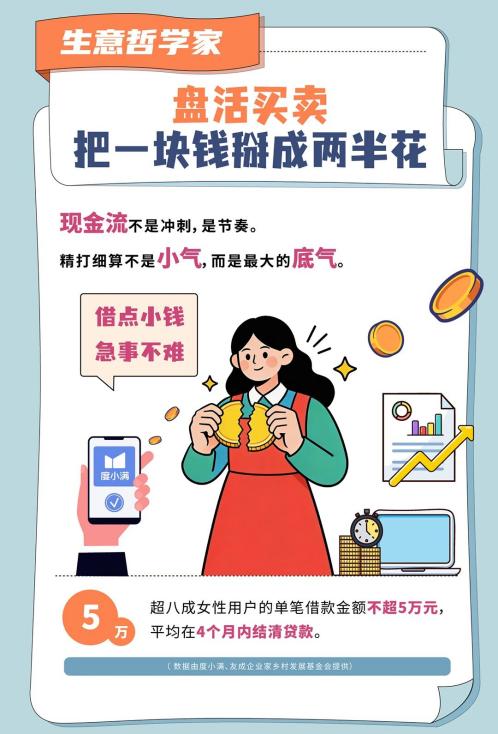 單筆借款不超過5萬(wàn)元,平均4個(gè)月內(nèi)結(jié)清,節(jié)日前8天就完成備貨資金儲(chǔ)備……近日,度小滿聯(lián)合南方周末發(fā)布2026小微企業(yè)女性圖鑒——《女老板的“生意經(jīng)”——關(guān)于“她”的煙火洞察》,報(bào)告揭示了一個(gè)值得關(guān)注的金融行為畫像:相比“大進(jìn)大出”的擴(kuò)張式經(jīng)營(yíng),中國(guó)女性小微經(jīng)營(yíng)者更傾向于一種“小額、高頻、快周轉(zhuǎn)”的資金使用節(jié)奏。