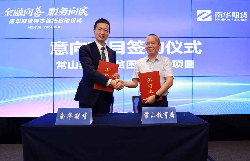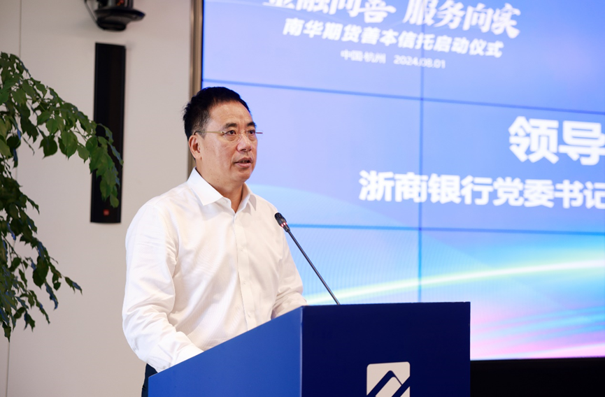 8月1日,“金融向善服務向實”南華期貨善本信托啟動儀式在位于杭州錢塘江畔的橫店大廈順利舉辦。浙商銀行黨委書記、董事長陸建強,南華期貨董事長羅旭峰,浙江省衢州市常山縣縣長王永明等領導出席儀式。