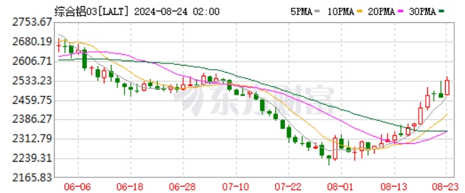 東方財富Choice終端顯示,北京時間8月24日凌晨2點,倫敦金屬交易所掛牌交易的綜合鋁03期貨合約(代碼:LALT)上漲2.16%,報收于2533.50美元/噸。自8月1日至記者發(fā)稿時,綜合鋁03期貨合約累計上漲10.61%,走出一輪觸底向上行情。《證券日報》記者采訪了解,業(yè)內(nèi)對鋁市需求抱有樂觀態(tài)度,在供應(yīng)偏緊、需求旺盛的大背景下,鋁市有望迎來景氣行情。
