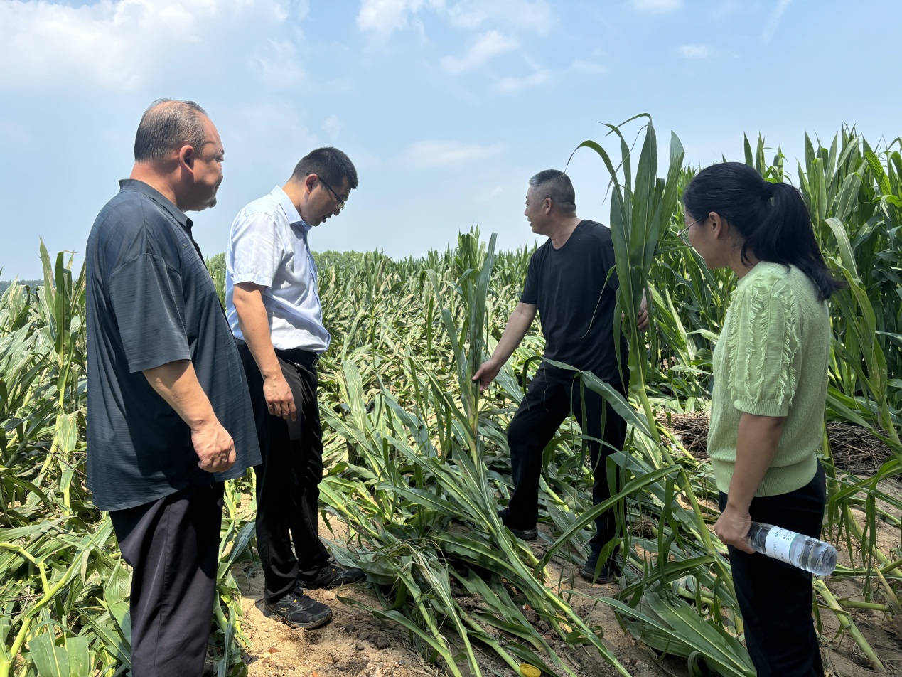接連幾天的強降雨,讓山東省泰安市岱岳區(qū)房村鎮(zhèn)北滕村所種的310畝玉米出現(xiàn)內(nèi)澇,了解到相關(guān)情況后,中國人壽財險山東省泰安市中心支公司理賠救災(zāi)工作組及時趕來。保險理賠人員忙著對倒伏的玉米面積進行現(xiàn)場測量,一同前來的岱岳區(qū)農(nóng)業(yè)農(nóng)村局農(nóng)技站站長楊廣懷和生產(chǎn)科科長肖靜則告訴村民們抓緊給發(fā)黃株矮的玉米進行中耕松土、追施氮肥和噴施葉面肥。