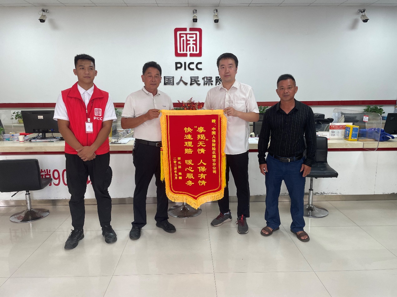 “沒想到理賠會這么快。”其中一位收到賠款的養(yǎng)殖戶裴元廷感慨道,“早上剛報完案,下午錢就到賬了,人保財險的服務太給力了。”當天下午,客戶就將充滿感謝與肯定的錦旗送到了人保財險北海市分公司工作人員的手上。