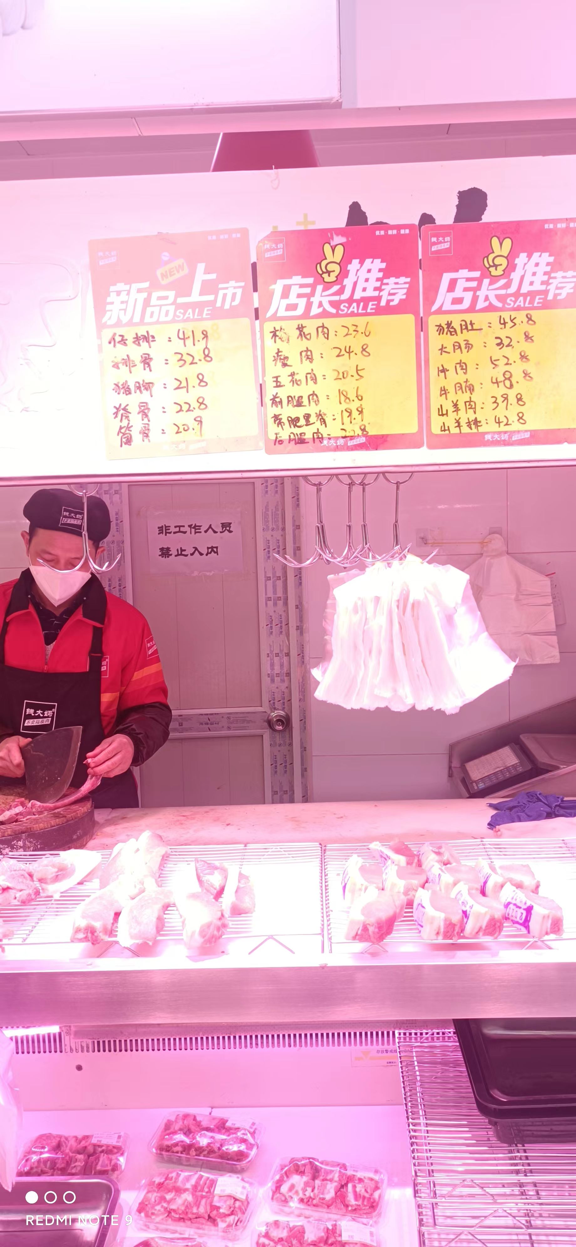 社區(qū)生鮮超市里肉品動(dòng)銷迅速(攝影:肖偉)