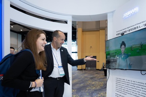 國(guó)際乳聯(lián)主席PiercristianoBrazzale與金典品牌數(shù)字代言人金婰互動(dòng)