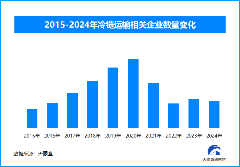 天眼查專業(yè)版數(shù)據(jù)顯示,截至目前,我國現(xiàn)存在業(yè)、存續(xù)狀態(tài)的冷鏈運輸相關(guān)企業(yè)超4.7萬家。其中,2024年截至目前新增注冊相關(guān)企業(yè)超2700家,從企業(yè)注冊數(shù)量趨勢來看,2020年以前,冷鏈運輸相關(guān)企業(yè)的注冊數(shù)量呈現(xiàn)出逐年增長的態(tài)勢,并在2020年達到頂峰,為超7100家。