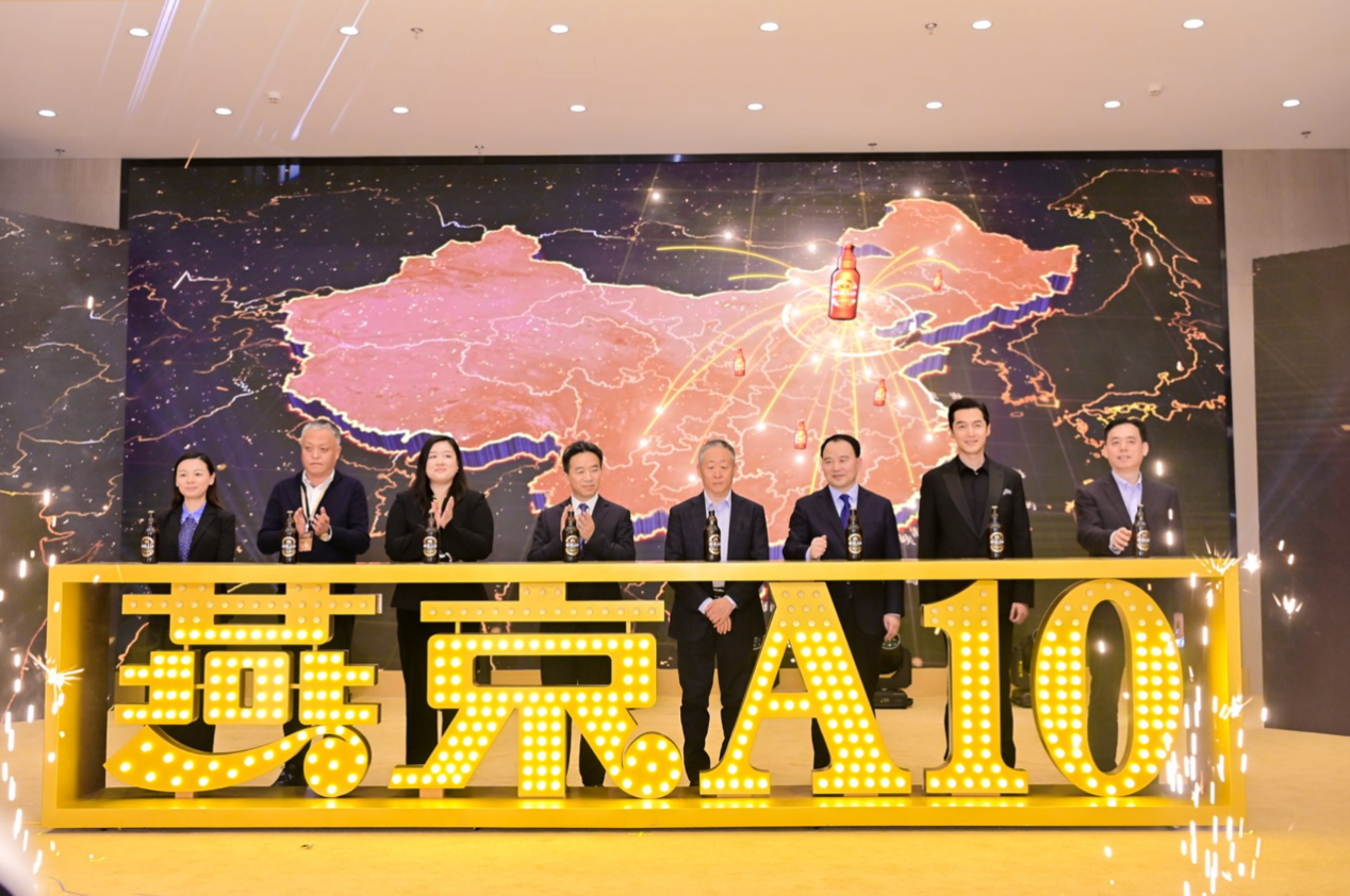 發(fā)布會最后,李欣、宋書玉、耿超、胡歌以及各方嘉賓共同登臺點亮“燕京A10”的字樣,這款醞釀三年的產(chǎn)品,正式走向市場。