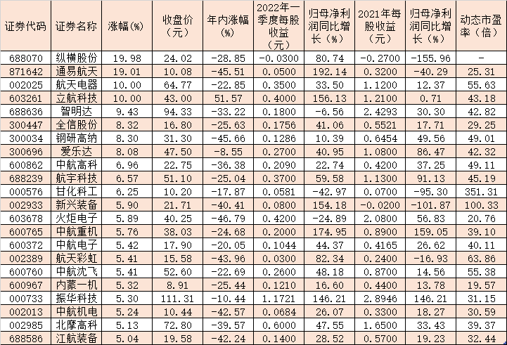 5月份的首個交易日,國防軍工板塊集體走強,整體上漲3.23%,跑贏上證指數(shù)(漲幅0.68%)。其中,縱橫股份、航天電器、立航科技等3只個股漲停,通易航天大漲19.01%,智明達、全信股份、鋼研高納、愛樂達等4只個股漲幅也均逾8%。