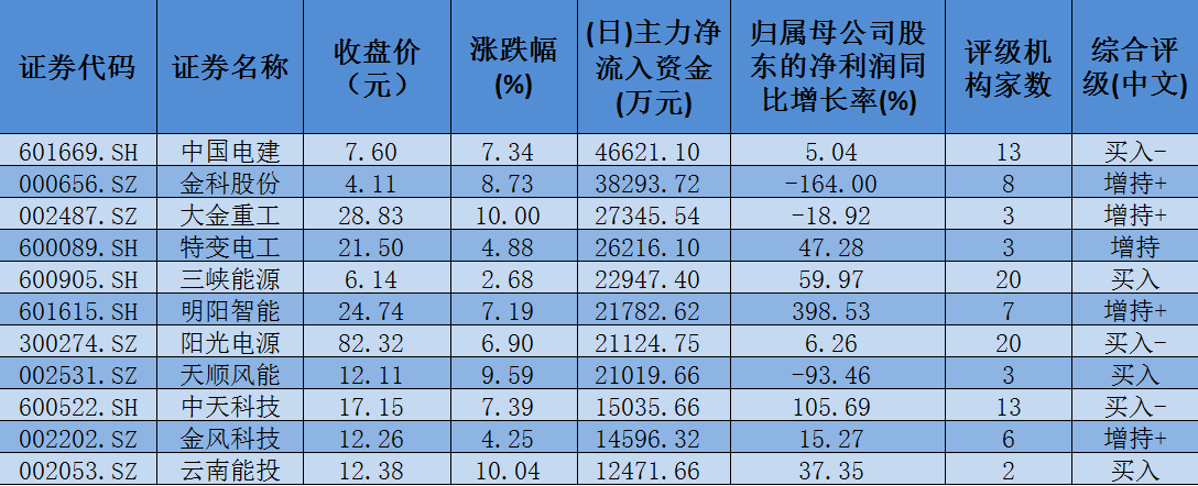 表:5月19日,風(fēng)電板塊大單資金凈流入額超1億元個(gè)股一覽
