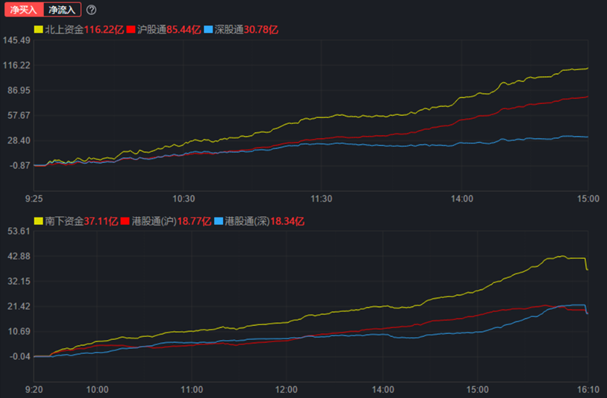 北向資金今日呈凈流入態(tài)勢(shì),全天凈買入116.22億元,其中,滬股通凈買入85.44億元,深股通凈買入30.78億元。
