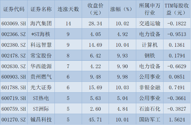表:連續(xù)上漲5天且今日收盤漲停股一覽