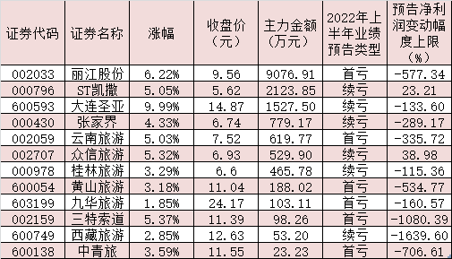 表:7月26日受到主力資金追捧的旅游股一覽