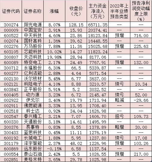 表:8月9日主力資金凈流入超千萬元的充電樁概念股