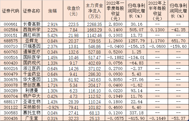 表:8月17日實(shí)現(xiàn)主力資金凈流入的輔助生殖概念股(數(shù)據(jù)截至上午收盤)