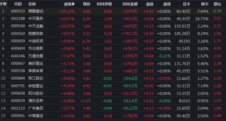 9月21日,房地產(chǎn)行業(yè)漲幅居首達1.41%。其中,市北高新、我愛我家、中天服務、棲霞建設、中天金融、中迪投資等6只個股集體漲停。