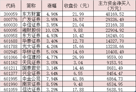 表:2月20日獲超5000萬元主力資金追捧的券商股