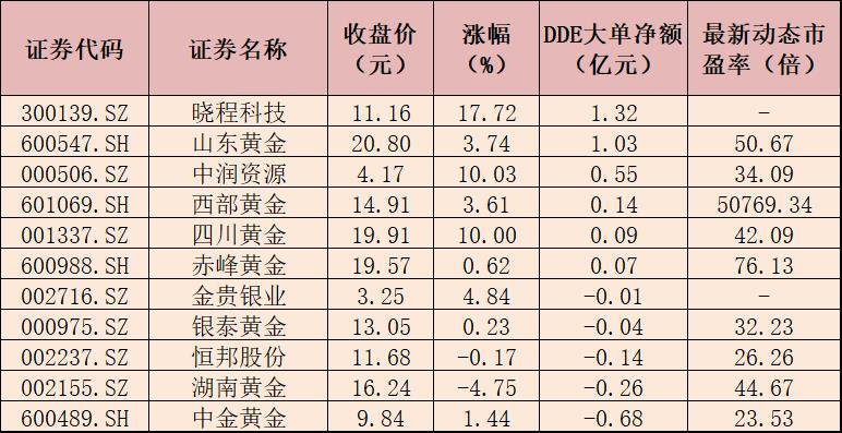與此同時(shí),多數(shù)貴金屬概念股也獲得市場(chǎng)大單資金的青睞。3月14日,板塊內(nèi)有6只個(gè)股呈現(xiàn)大單資金凈流入態(tài)勢(shì),合計(jì)凈流入額為3.20億元,其中,曉程科技、山東黃金、中潤(rùn)資源獲大單資金凈買入額居前,均超5000萬(wàn)元。