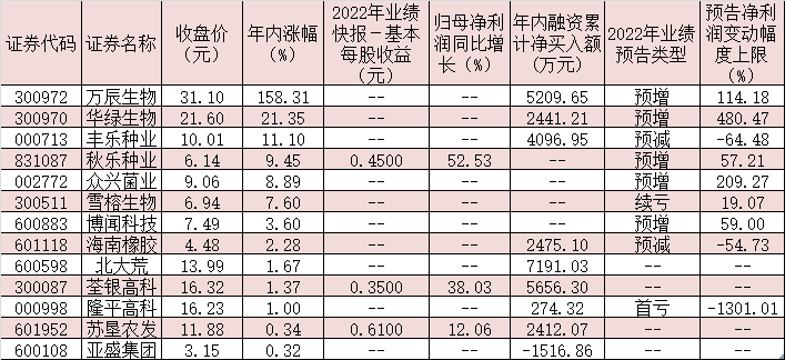 事實(shí)上,種業(yè)板塊上市公司去年業(yè)績(jī)改善明顯。同花順數(shù)據(jù)顯示,截至3月20日收盤,已有14家種業(yè)板塊上市公司披露了2022年全年業(yè)績(jī)預(yù)告,8家公司業(yè)績(jī)預(yù)喜,占比近六成。其中,農(nóng)發(fā)種業(yè)、華綠生物、眾興菌業(yè)、敦煌種業(yè)、萬辰生物等5家公司預(yù)計(jì)2022年全年歸母凈利潤(rùn)同比增幅上限均在100%及以上。